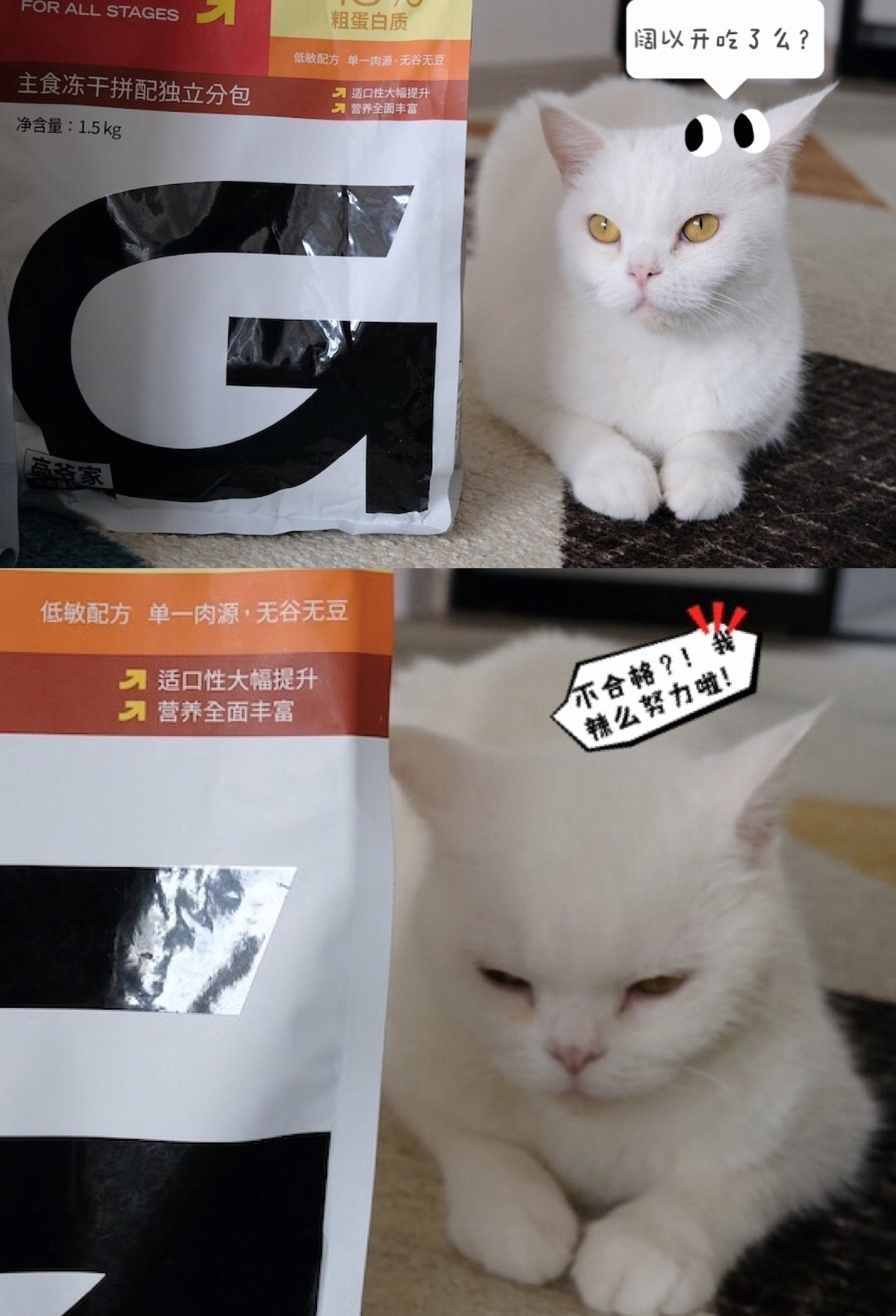 之前也是喂的高爷家,最近换了豆柴双拼风干,指标还可以,他们也爱吃,便便都少了一些