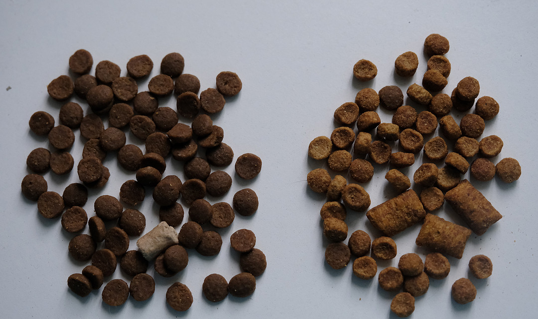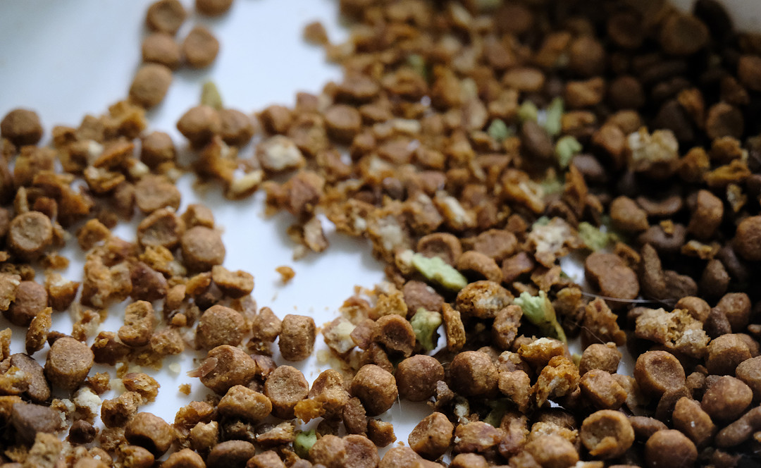 大量碎渣,都可以看出来里面的谷物纤维,难怪毛孩子们挑嘴呢~