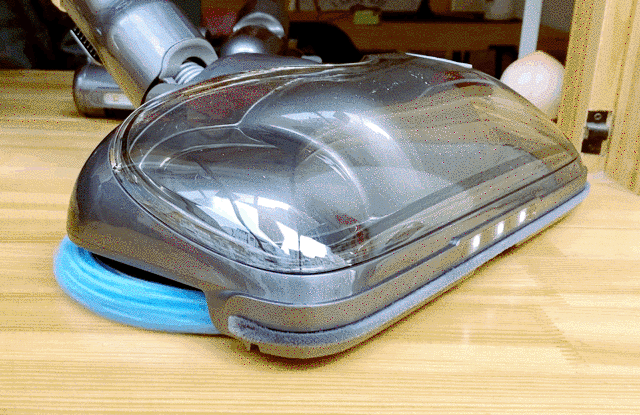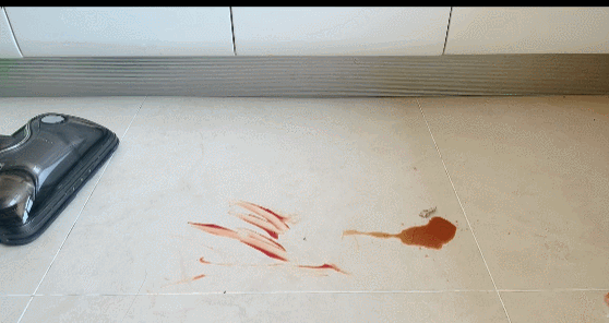 若是想要擦洗不小心洒落的汤汁、酱油等液体,长按3秒开机键,就会自动进入「只擦不吸」的纯擦地模式,不用担心液体被吸入到电机中。
