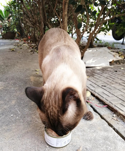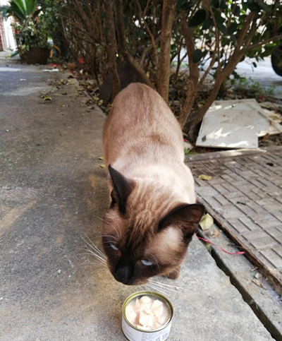 直接拆了一罐给那暹罗猫,结果就是,那猫就喝了几口汤,肉肉不吃,还是不给我碰。