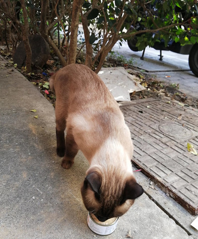 等我再一次看到那只暹罗猫在外面溜达时,又跟后面捉它,结果后面来了一对夫妻,看到我逗猫,就说那猫是她家的,然后每天早上都要出来溜达,中午才回去,都习惯了。