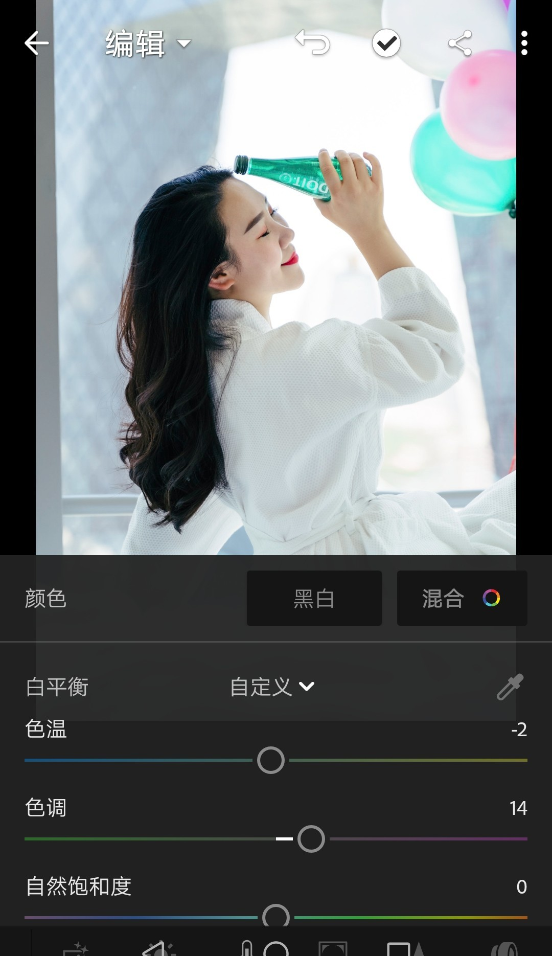 我比较喜欢冷色调,所以色温上稍微偏蓝了一些,色调则是调向品红。除了手动调节,你也可以点击“自定义”那个小箭头,尝试“自动”(这个自动往往效果一般)。或者点击右侧的“吸管”,选取画面中的中性灰区域。