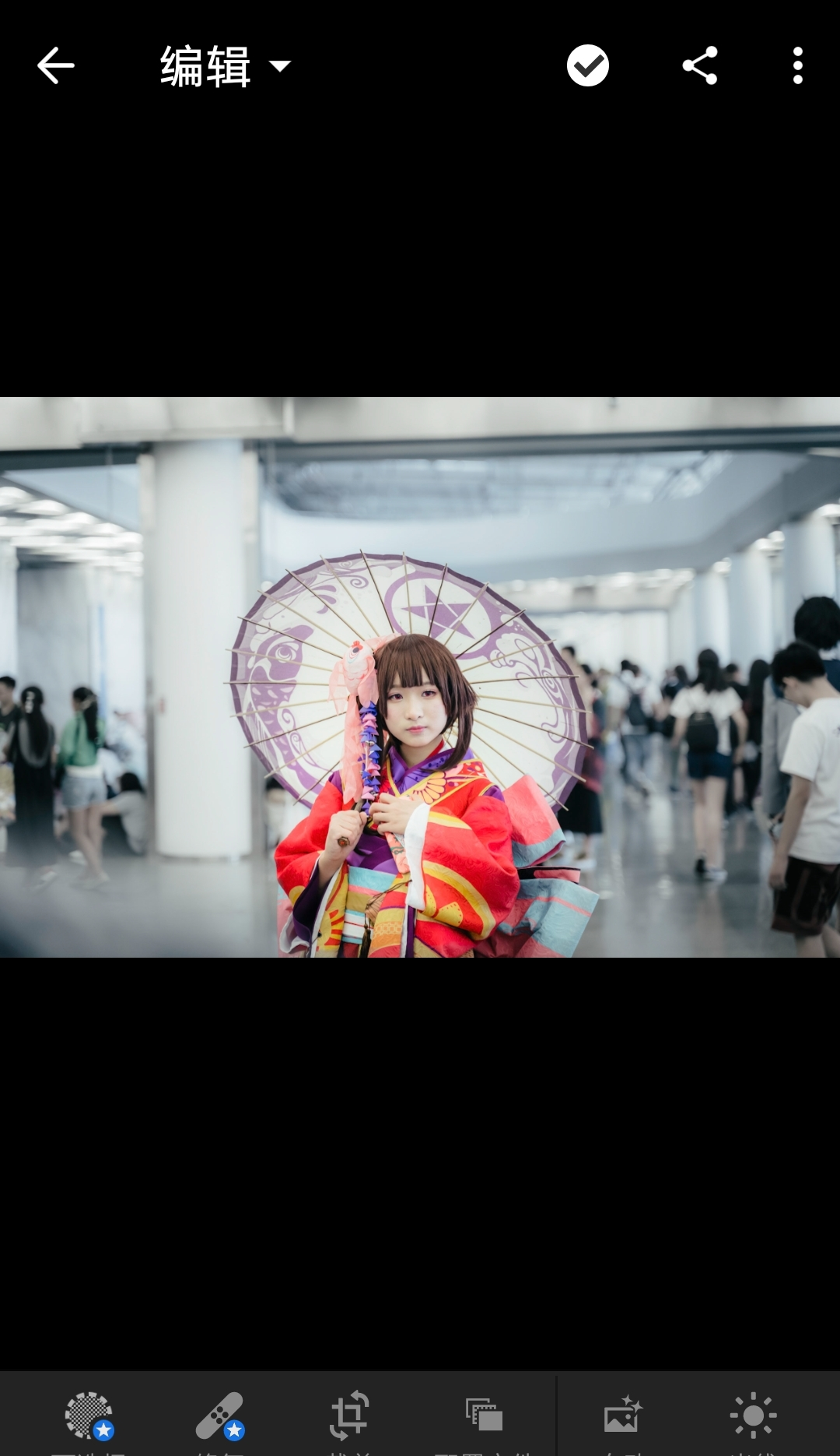 锐化时建议放大原图,便于看到效果。两个手指即可放大。