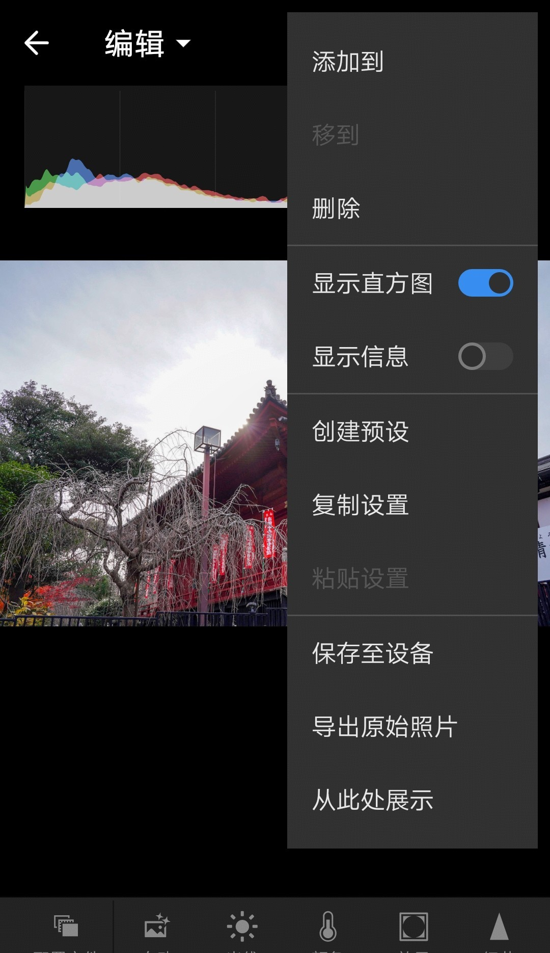 选择显示直方图