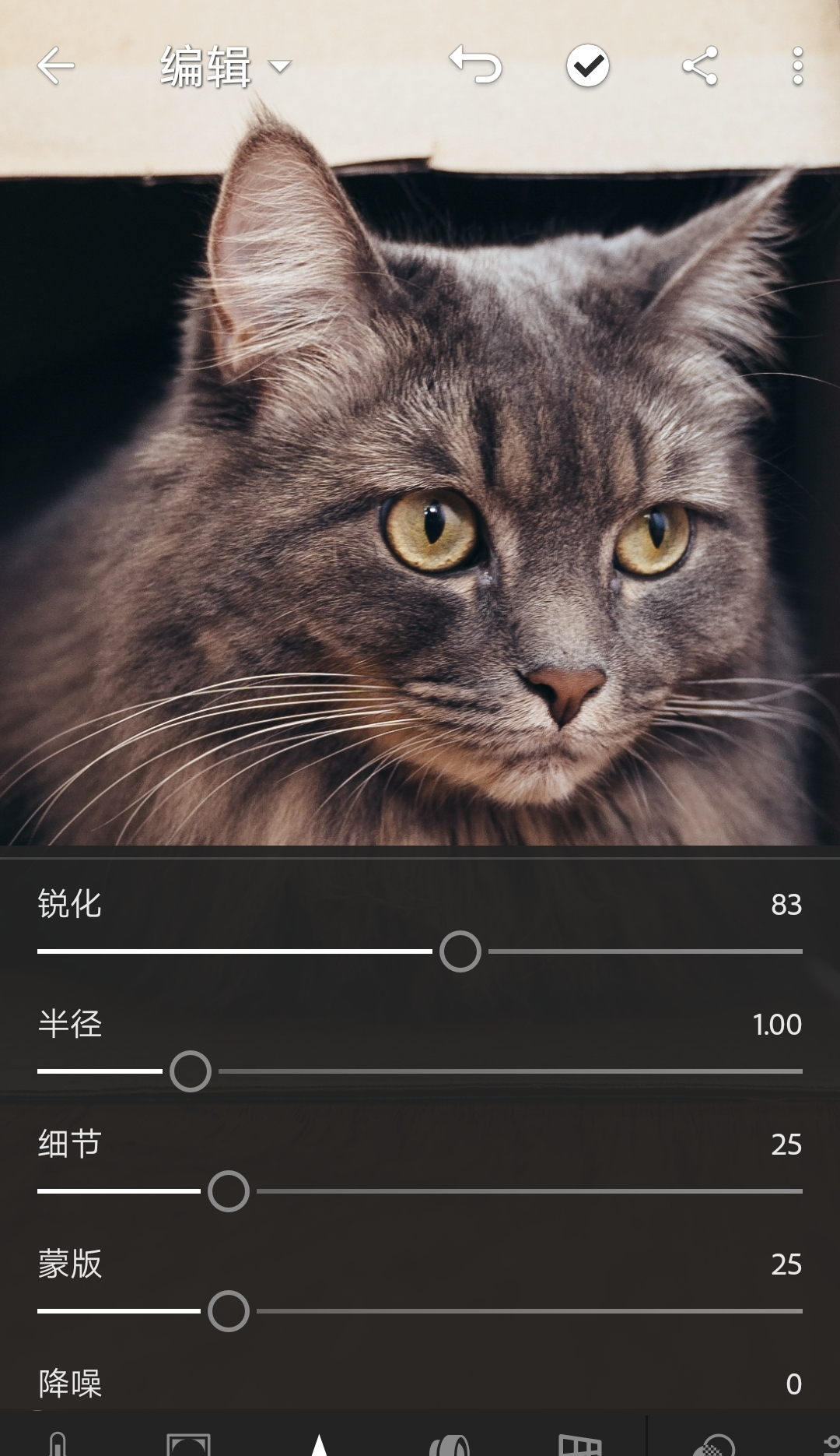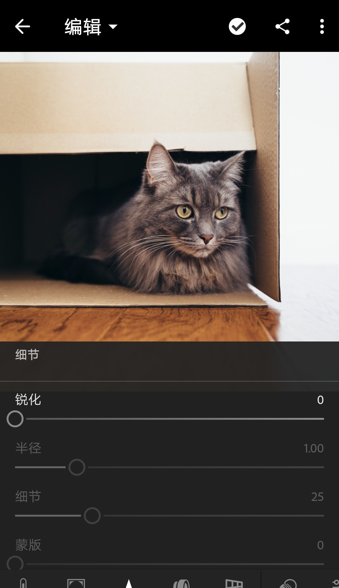 在“细节”模块,可以找到锐化滑块