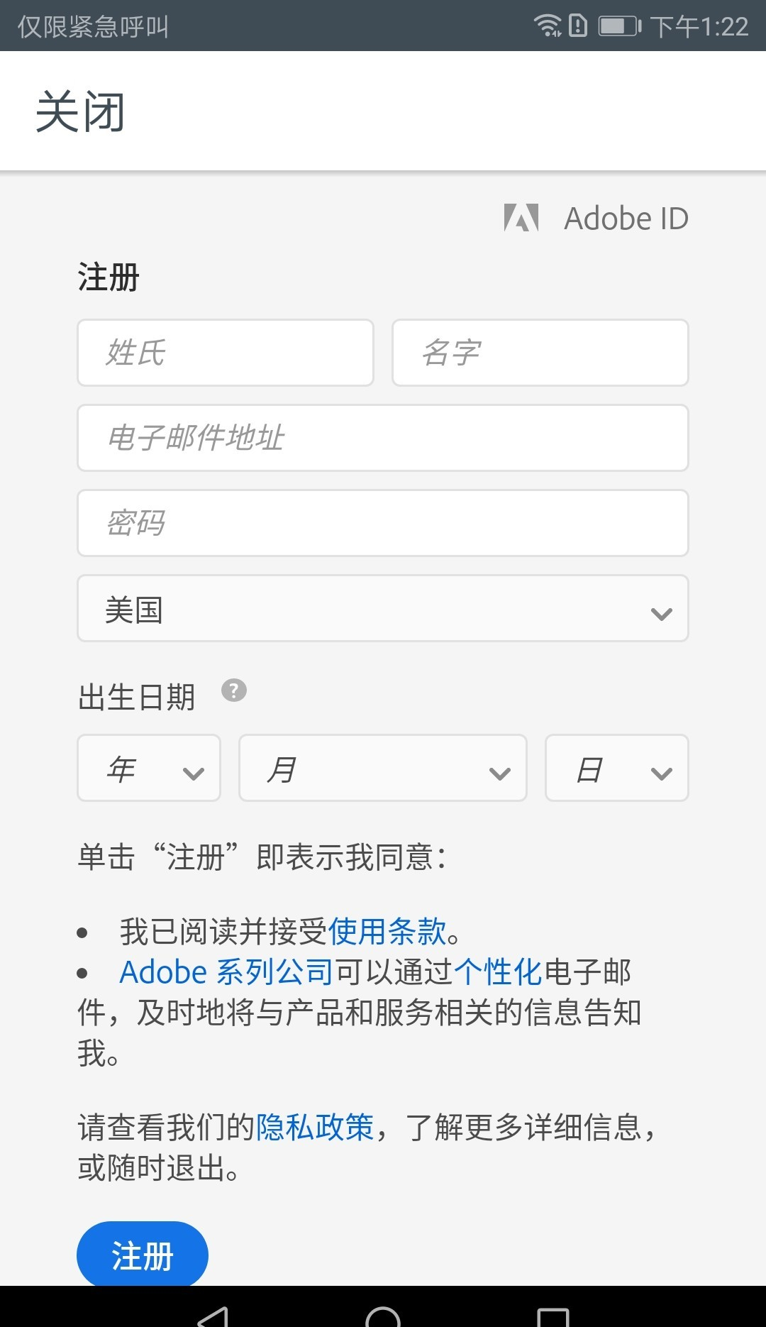 点击下面的注册即可进入注册界面。亲测不需要科学上网。