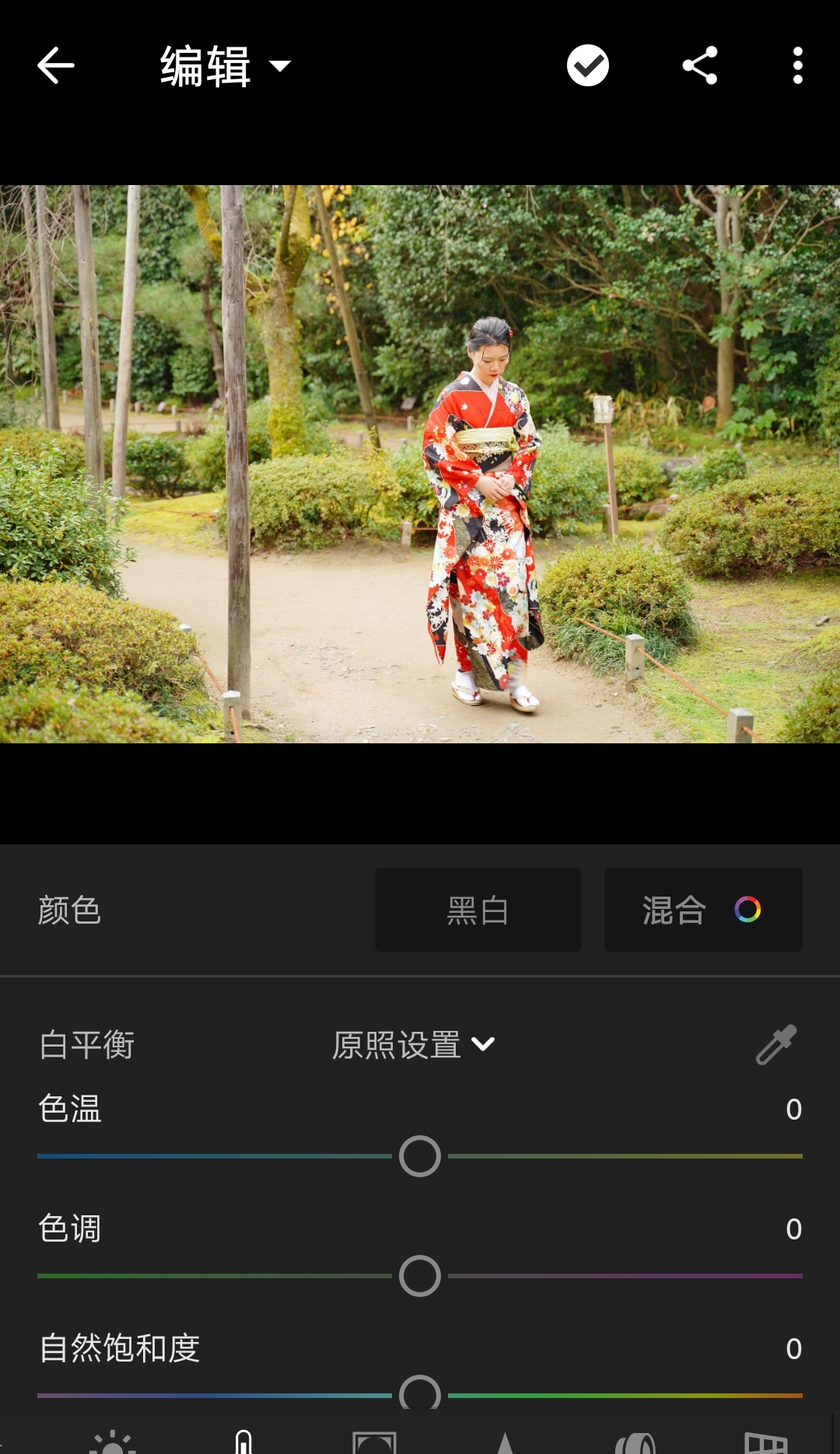 这就是点击了吸管之后的界面。选择应该是中性灰的区域,软件即会自动算出白平衡(因此你选取的区域就很重要)。可以在此基础上做微调。
