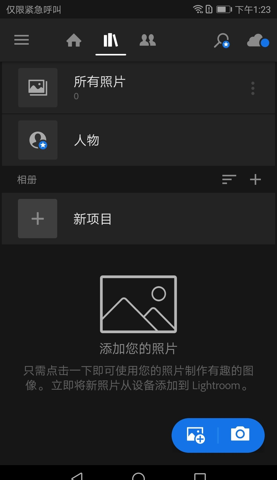 点击右下角的加号,即可导入照片。注意不是那个新项目边上的加号。