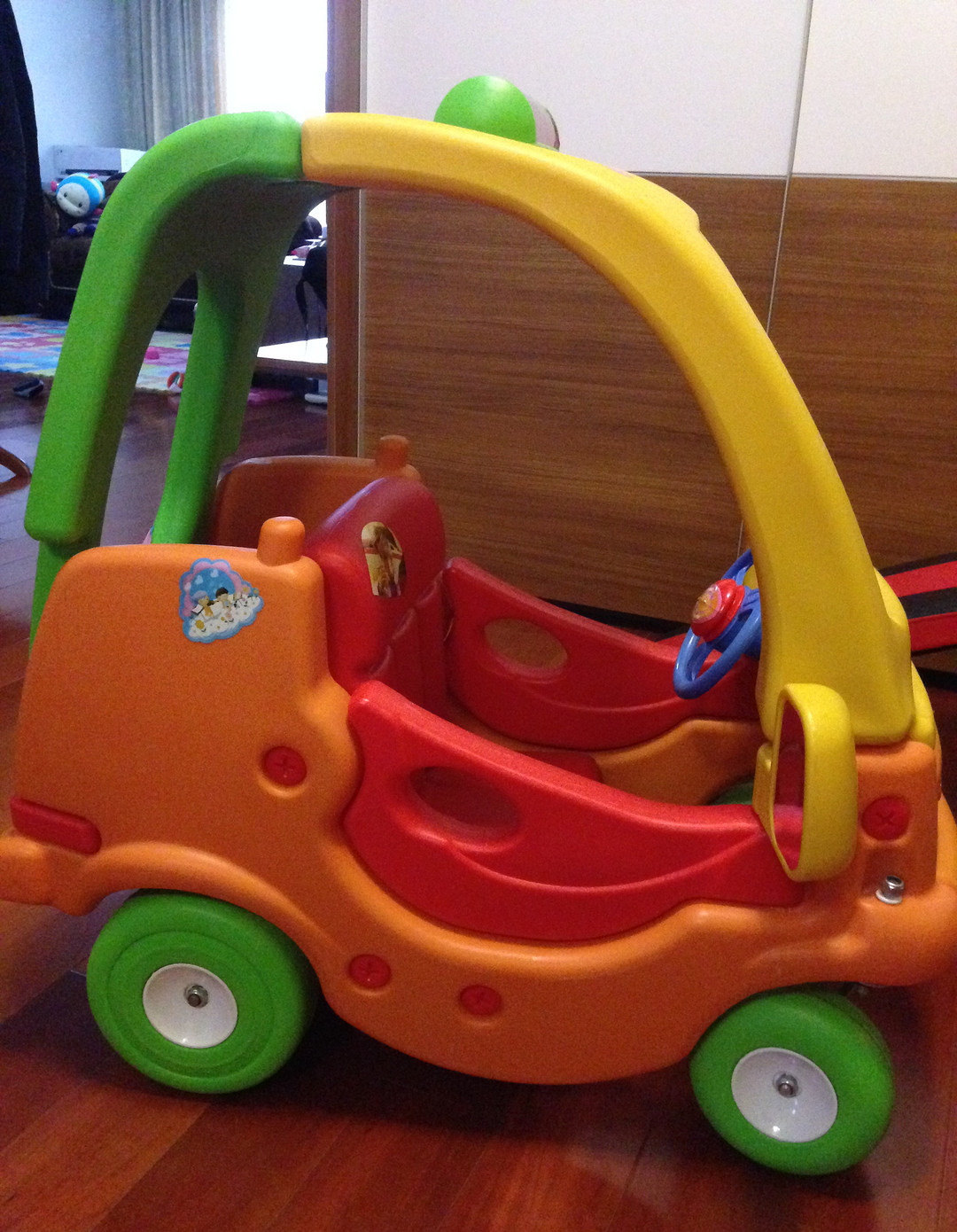 。不过自从宝宝学会跟我看电视之后,为了保护他眼睛,我也不得不减少电视开启次数了。。。玩具的话,由于地方不太大,而且地处卧室中,最好多放些情景模拟类玩具,球类的基本都不放了,电动车也如图粘上了圈海绵,否则橱柜的下场可是会很凄惨的