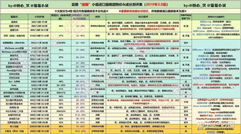尝试过很多款,也了解过一些没有喂过的,争议性比较小认可度比较高的应该是这几款: 1⃣️巅峰 Ziwi Peak 来自新西兰的顶级猫粮,绝对遵从猫咪的原始习性,含肉量高达98%,碳水化合物接近于自然,不过有两款的灰分偏高,脂肪含量也略高,但也不影响它的品质。如此昂贵的猫粮并不适合天天吃,偶尔给主子改善下生活还是蛮不错的。购买时请仔细甄别是否正品。 ?性价比:虽然很贵,但也配得上它的价格。 ?均衡性:高脂肪低纤维,长期吃猫咪可能会很越来越胖,个别产品粗灰分略高。 ?适口性:超高肉含量,猫咪吃起来肯定很爽。 ?致敏性:无致敏配方,高蛋白质的猫粮需要新旧混合过渡,以防肠胃不适。 ?品牌加持:创立于2004年,理念是“以真正的肉,制作贴近自然的宠物食品”,斩获多项国际大奖,出口世界19个国家,口碑一致好评。 2⃣️渴望 Orijien 在国内拥有超高口碑,高含新鲜多样化的肉类,遵循猫咪的原始特性。生产于加拿大,品质值得信任。 ?性价比:高性价比很高。 ?均衡性:高蛋白低碳水化合物,各项成分均贴近大自然。 ?适口性:85%的肉含量,适口性极佳。 ?致敏性:豆子种类多,可能会软便,注意科学喂养。 ?品牌加持:创立于1985年,遵从生物学原则,严格把控原材料选择,同样斩获多项国际大奖。 3⃣️爱肯拿 Acana 和渴望同属一个公司,价格比渴望略低,但同样以新鲜肉类、鱼类为主。 ?性价比:高性价比,预算充足的话,可以选择长期喂养。 ?均衡性:高蛋白低碳水化合物,各项成分均贴近大自然。 ?适口性:亲测颗粒较大,适口性极佳。 ?致敏性:相对渴望来说,引起肠胃不适的概率减少,同样要注意科学喂养。 4⃣️K9 Natural 同样来自新西兰顶级猫粮,颇受好评。采用独特低温真空冷冻干燥法,能够将生鲜食材直接急冻为固态,让食材保留完整营养。 ?性价比:只能说贵有贵的道理,且无法抗拒。 ?均衡性:0谷物,低碳水化合物,脂肪含量较高。 ?适口性:90%的肉含量,适口性极佳。 ?致敏性:无致敏配方,不过换粮时注意科学喂养 ?品牌加持:创立于2006年,新西兰发展最快的宠物食品公司,目前出口到18个国家。先以狗粮为人熟知,通过研究灰狼的食性而生产出符合自然的狗粮。 5⃣️GO!Natrual 中高端猫粮里比较不错的,肉粉含量排第一位,高蛋白低碳水化合物,低镁降低泌尿系统疾病的风险。购买请谨慎甄别真假。 ?性价比:性价比可以,小贵。 ?均衡性:高蛋白低碳水化合物,各项成分符合标准。 ?适口性:极佳 ?致敏性:不含致敏配方,换粮请注意过渡。 ?品牌加持:加拿大Petcurean旗下品牌,此外还有Now Fresh,创立于1999年,主打中高端宠物食品市场。 6⃣️Now Fresh 和GO!Natrual同是中高端猫粮,但比GO要差一些,国内称Now为“贵价土豆粮”,原因是用土豆取代易致敏谷物,但同时也降低了性价比。 ?性价比:性价比低 ?均衡性:动物性蛋白较低 ?适口性:含肉量少,适口性一般。 ?致敏性:碳水化合物较高,容易引起肠胃不耐受。 ?品牌加持:和GO!Natrual同厂 7⃣️天衡宝 NaturalBalance 美国中高端品牌,在国内拥有不错的口碑,属于入门级的天然粮。国内假货太泛滥,在大陆唯一有授权的就是E宠商城,买之前请一定要仔细甄别。 ?性价比:性价较高 ?均衡性:蛋白和脂肪含量适中 ?适口性:佳 ?致敏性:含致敏配方,肠道敏感的猫咪慎选。 ?品牌加持:由女性犬类营养学家创立于1974年,2014年获WDJ推荐。 8⃣️牛油果 Avoderm 美国天然粮品牌领跑品牌,以牛油果配方为特色,对宠物皮肤和毛发起到很好的作用。选够请注意甄别正品,国内有同名品牌。 ?性价比:性价比可以。 ?均衡性:肉粉含量多,含谷物成分,牛油果配方对皮肤和毛发较好,网评容易催肥。 ?适口性:适口性OK。 ?致敏性:含有致敏配方。 ?品牌加持:创立于1982年,多年来被一直WDJ推荐 9⃣️优诺凡 Optima Nova 西班牙Visan(威尚)集团旗下的高端天然宠物食品品牌,使用当地供应商提供的优质天然原料,坚信“只此一生,食不将就”的理念,现有三文鱼、兔肉、鸡肉三种口味。 ?性价比:性价比高 ?均衡性:鲜肉含量较高,各项成分符合标准。 ?适口性:颗粒较大,适口性很好。 ?致敏性:含致敏配方 ?品牌加持:在宠物食品市场拥有多年经验,旗下有多个宠物食品品牌。 还有一些中端的品牌口碑也还挺不错的,比如像麻利、福摩、素丽高这些。