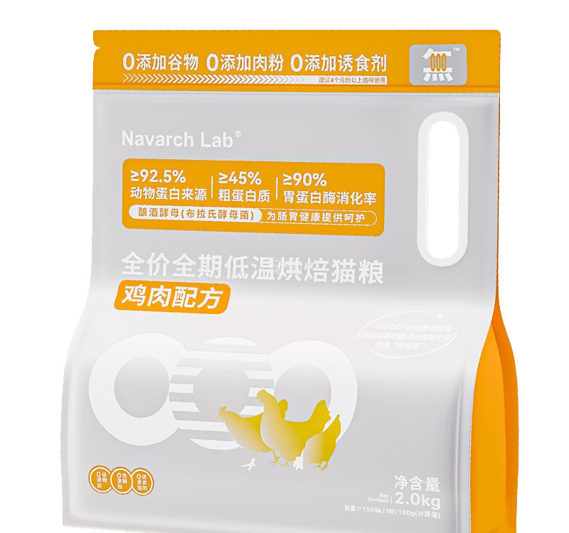 新品解析:这款猫粮的原材料来自武夷山脉生态区的42天出栏童子鸡,甄选鲜鸡肉,且含量高达50.7%~!猫粮动物性原料高达92%,粗蛋白含量高达43%。作为冻干三拼粮,猫粮中添加10%三拼冻干:6%生骨肉冻干+2%蛋黄冻干+2%鸡肝冻干,并且富含生骨肉冻干,猫咪的营养来源被360度全方位补全~