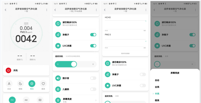 造梦者+ APP也提供了丰富的控制及设置选项,界面简约直观,父母也能轻松上手。既可以实时查看造梦者除醛空气空气净化器工作状态和室内温湿度等信息,也可以和其他造梦者产品连接打造智能家居生活。
