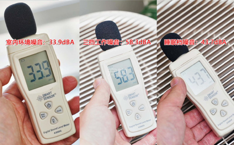 在工作噪音方面,使用噪音计实测室内环境噪音为33.9dBA,造梦者除醛空气空气净化器三挡噪音为58.3dBA,睡眠模式下噪音仅为43.7dBA,在夜晚关闭LOLED屏显并开启睡眠档,根本不会影响家人休息。