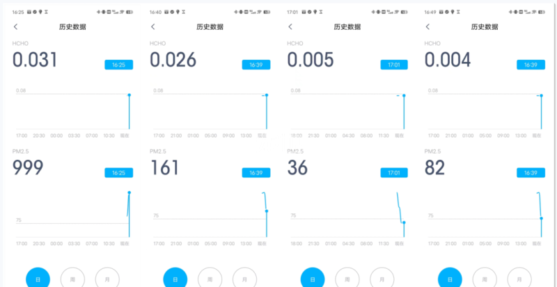造梦者除醛空气空气净化器甲醛洁净空气量值为:CADR 300m³/h,颗粒物洁净空气量值为:CADR 530m³/h,甲醛累积净化量(CCM甲醛)≥1000mg,颗粒物累积净化量(CCM颗粒物)≥18000mg。 从造梦者+ APP反馈结果来看,28㎡卧室内甲醛最高值为0.031,PM2.5最高值为999,净化至0.004和82的优级空气质量时间不足25分钟,净化效率及速度还是很高的。