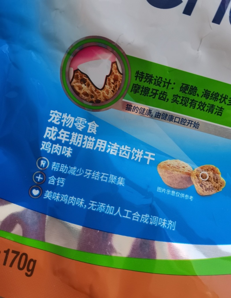 这个健齿小饼干无添加人工合成剂,为了猫咪很放心,里边还专门添加了相对应的营养成分和原材料,小猫咪吃了毛发会更亮,口气也更清新,比较推荐食用