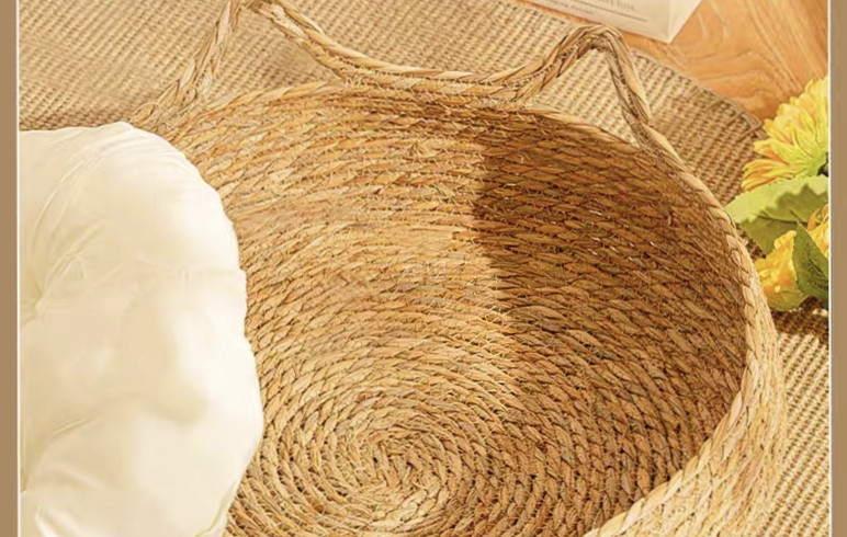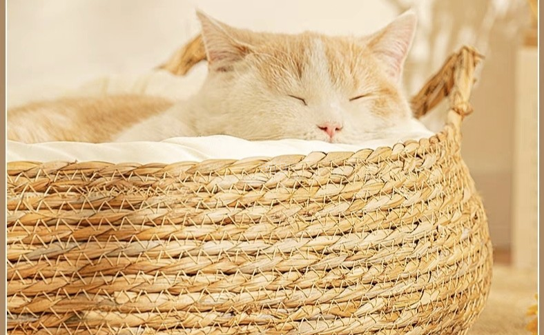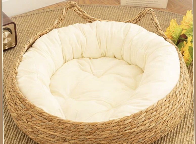 冬暖夏凉,四季都可以使用,而且编织的非常的细密,亚麻的面料亲肤,猫猫真的是很喜欢这个藤编的窝啊。