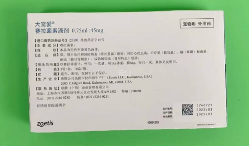 由于猫咪可能感染的寄生虫,种类有很多种,还分为内驱和外驱。大宠爱则属于内外同驱的药物,可以一次性搞定猫咪体内外多种寄生虫。其中就包括了,跳蚤、耳螨、疥螨、虱子、蛔虫、钩虫、心丝虫,驱虫谱很广泛。更令人惊喜的是,它还能驱杀跳蚤卵、跳蚤幼虫,真正的从源头将寄生虫杀灭。除了治疗之外,即使没有寄生虫肆虐的时候,可以使用它来进行预防。