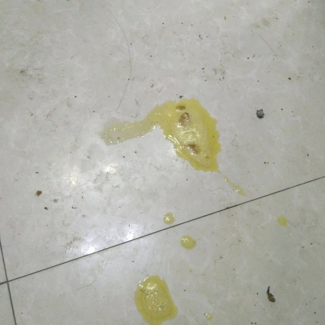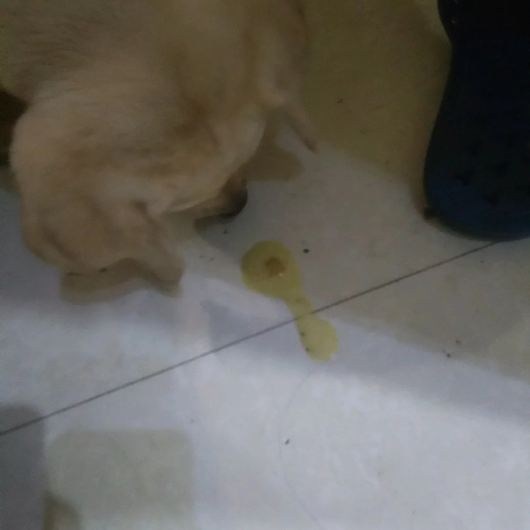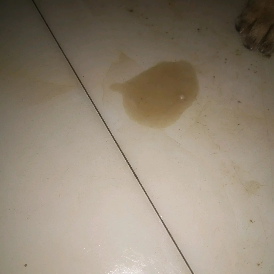 拉稀拉的一滩 不是血 拉了好几摊了 下午吃了泡软的狗粮 现在已经禁食禁水了