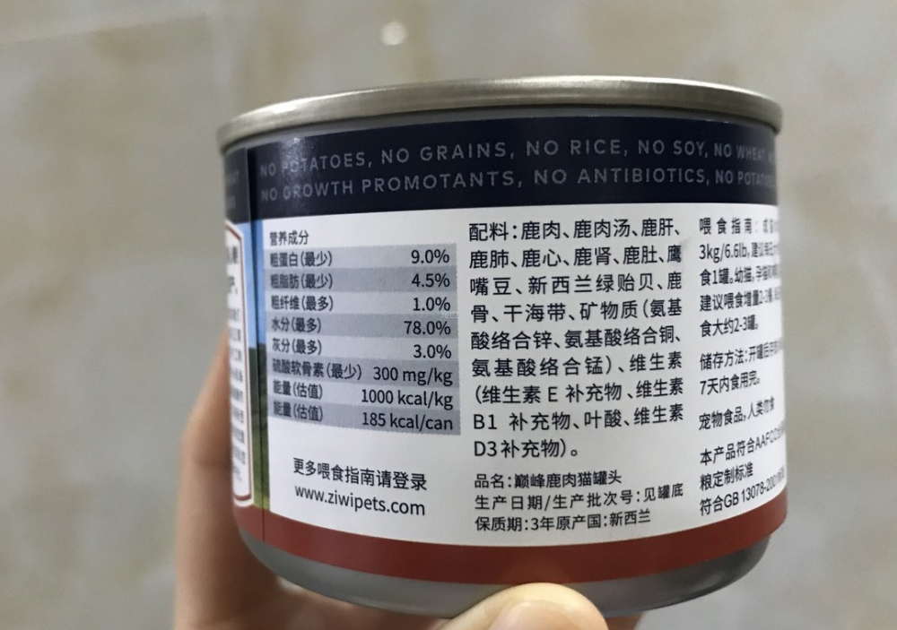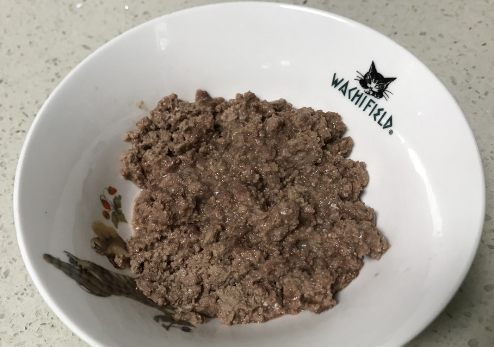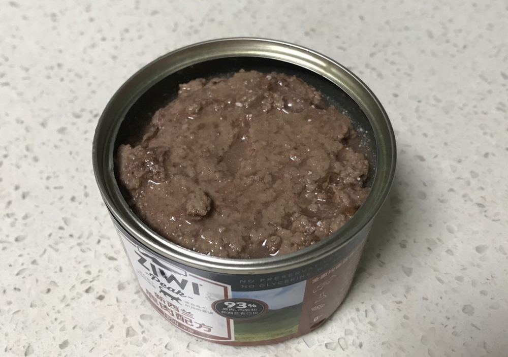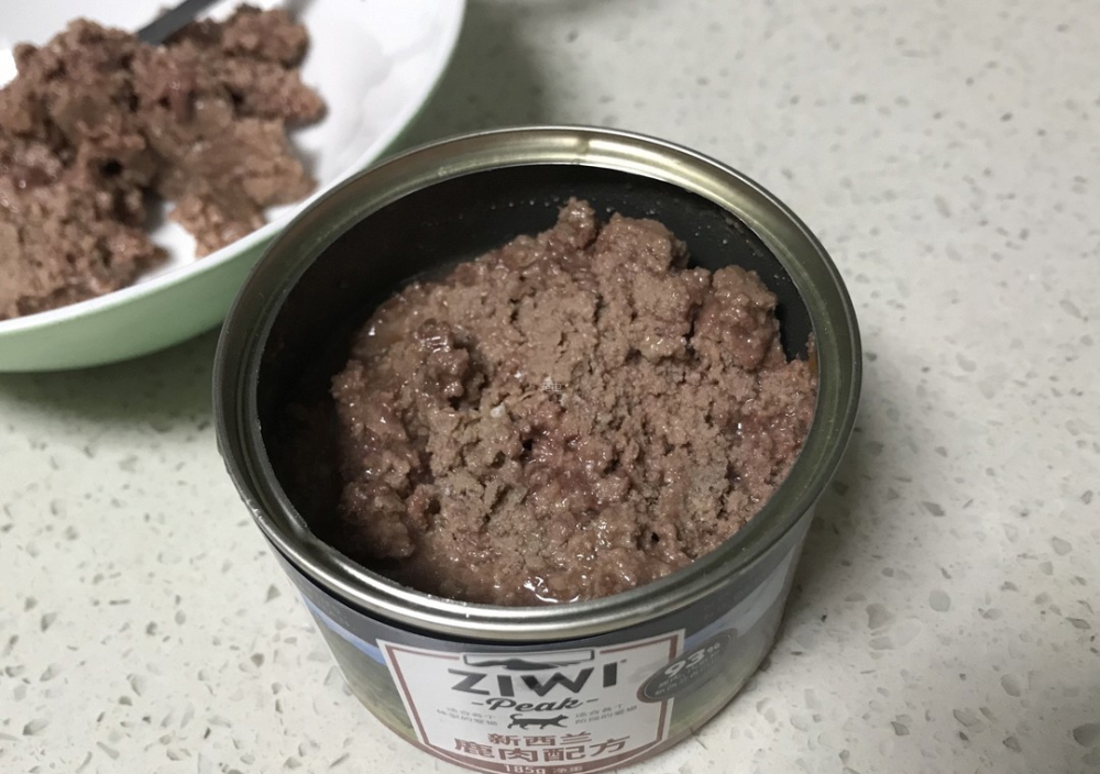 气味是较淡的肝脏味混合贝类气味,还有一种无法形容的味道,可能是鹿肉独特的气味吧~(这里顺带说一下有些品牌有袋鼠口味的,我也还没有尝试过,据猫友说袋鼠也有一种特殊的气味嘻嘻)